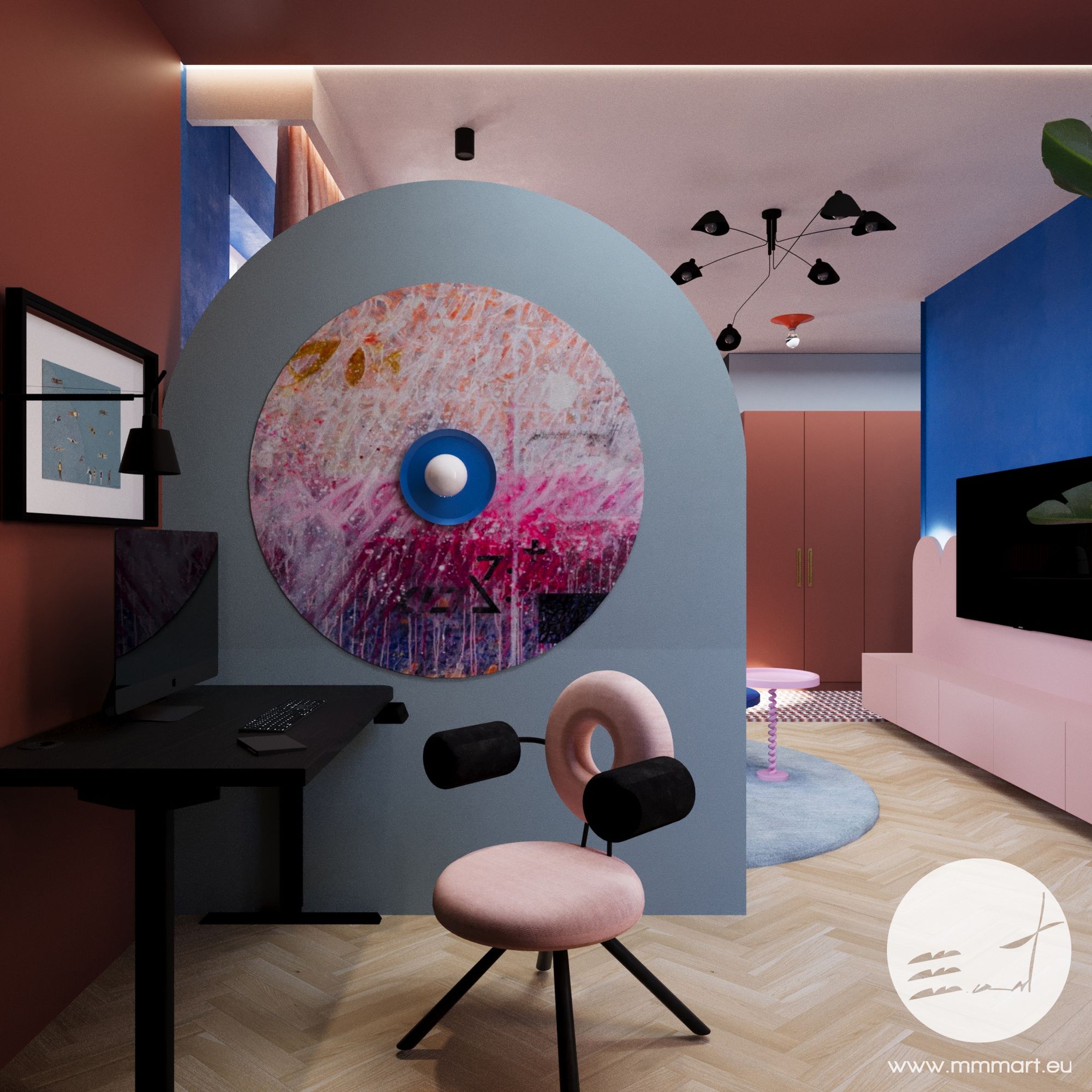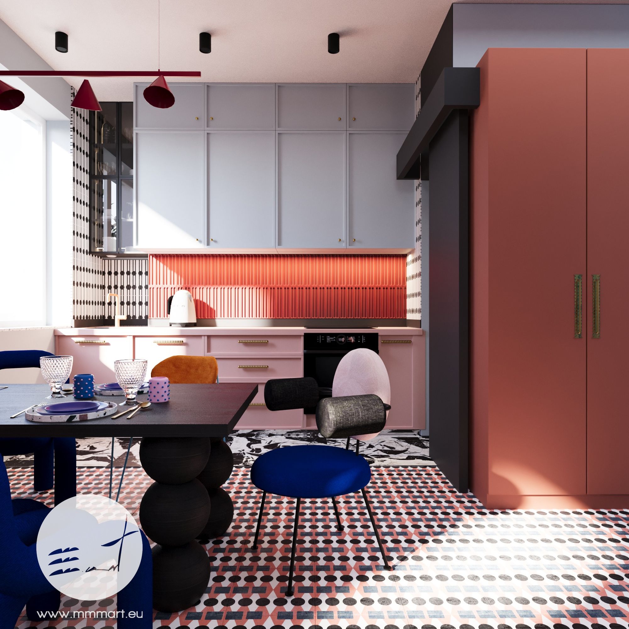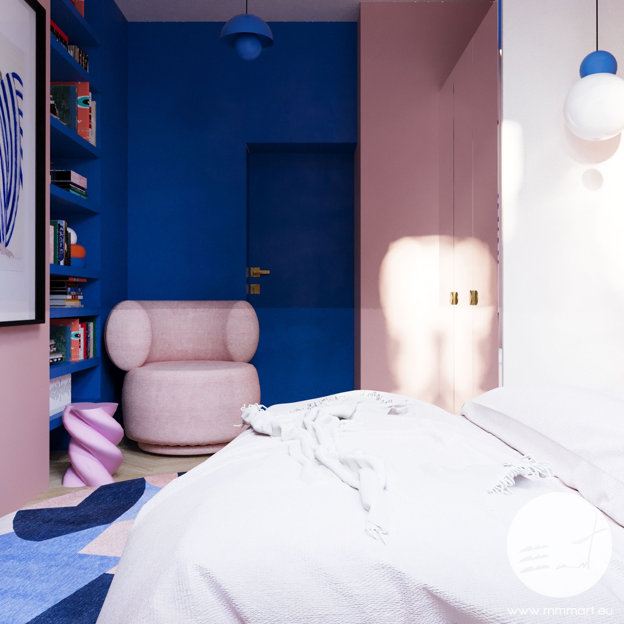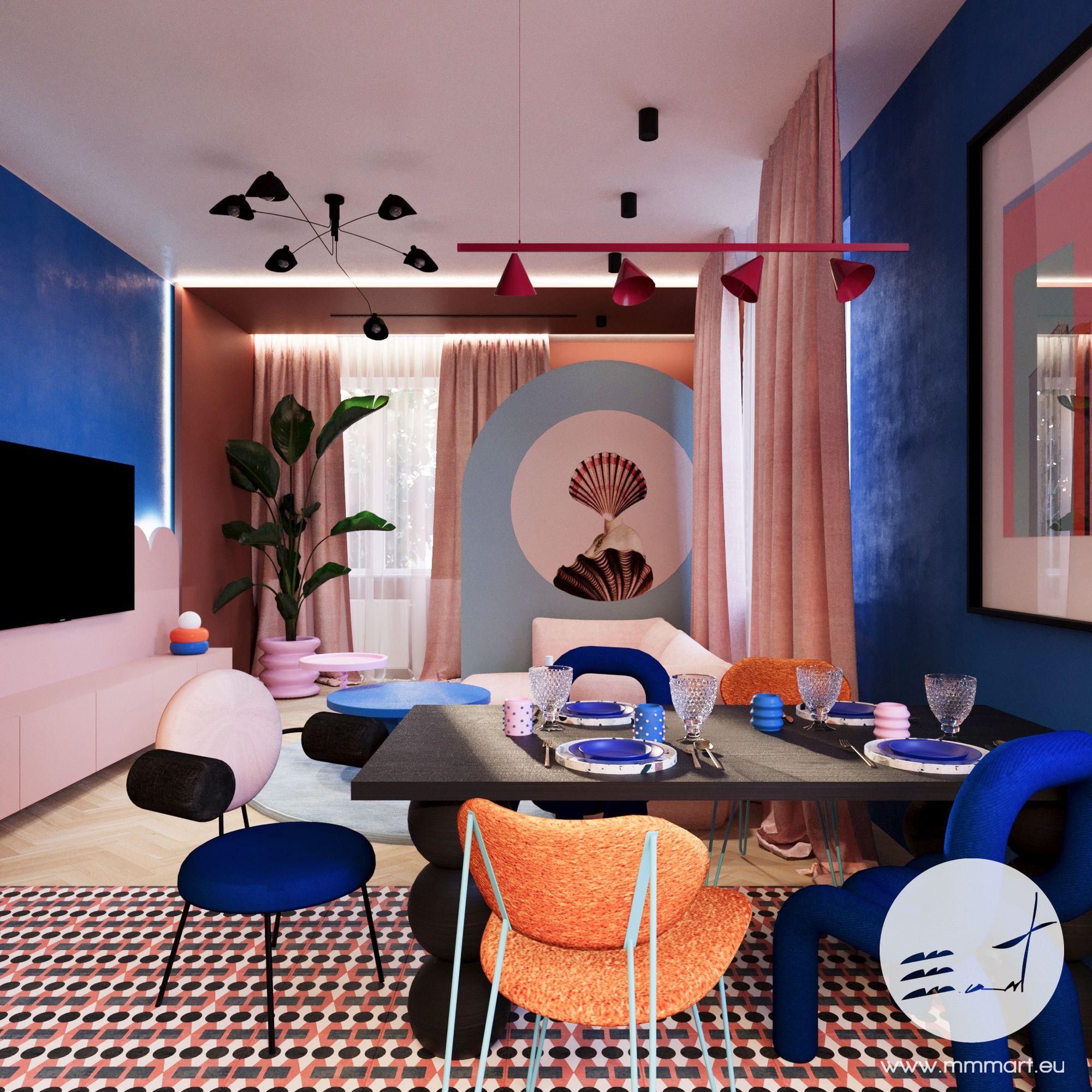 Projekt wnętrz mieszkania w mocnych kolorach,