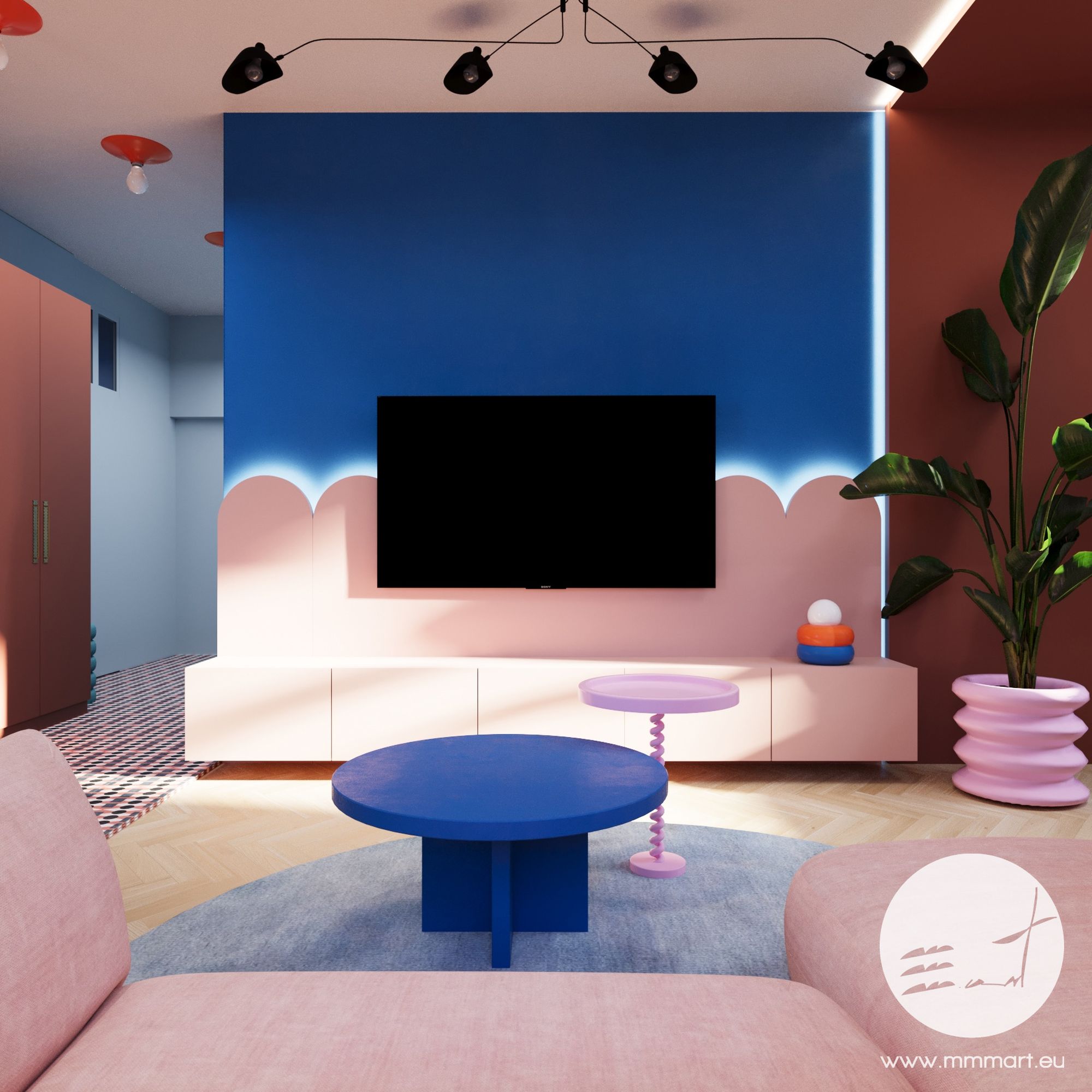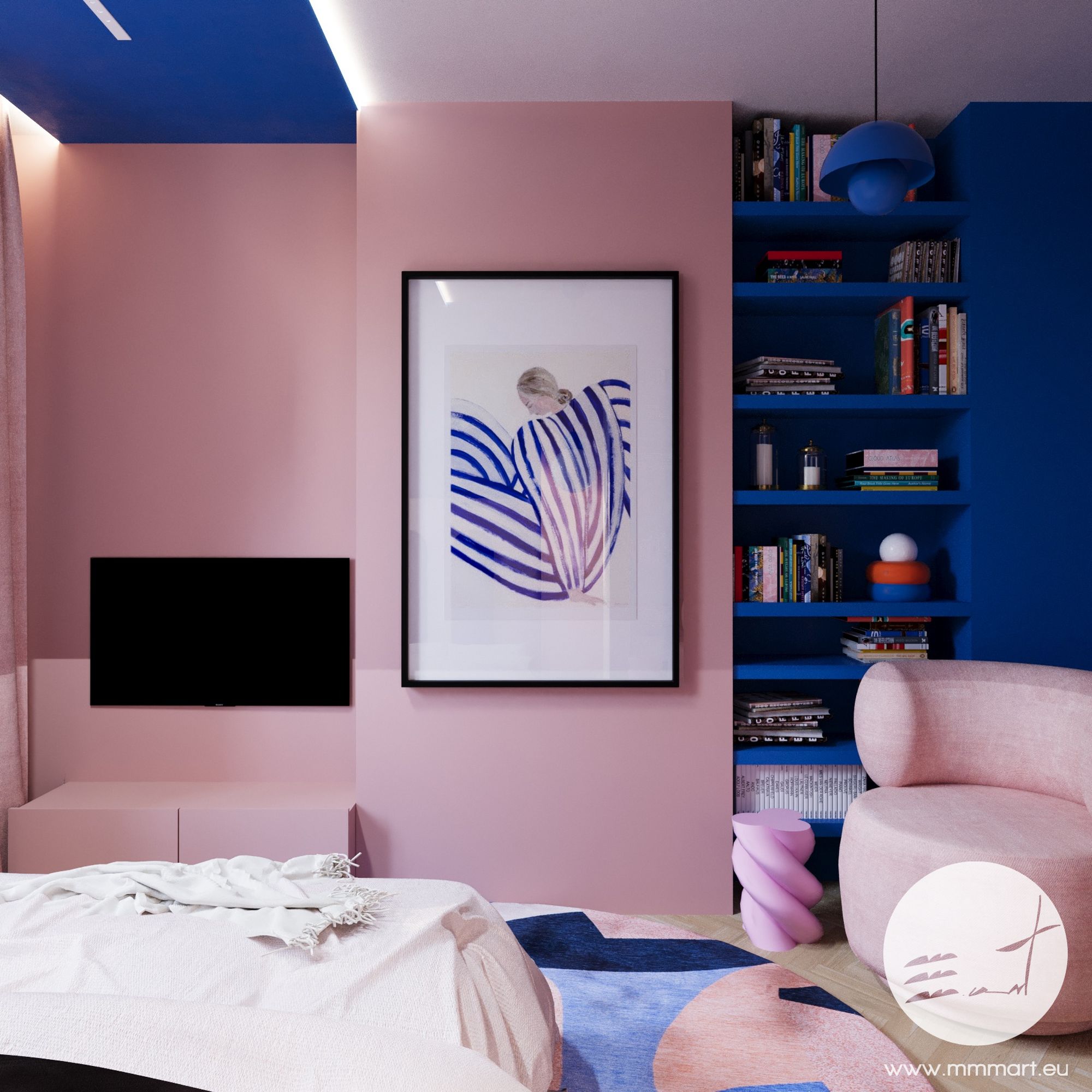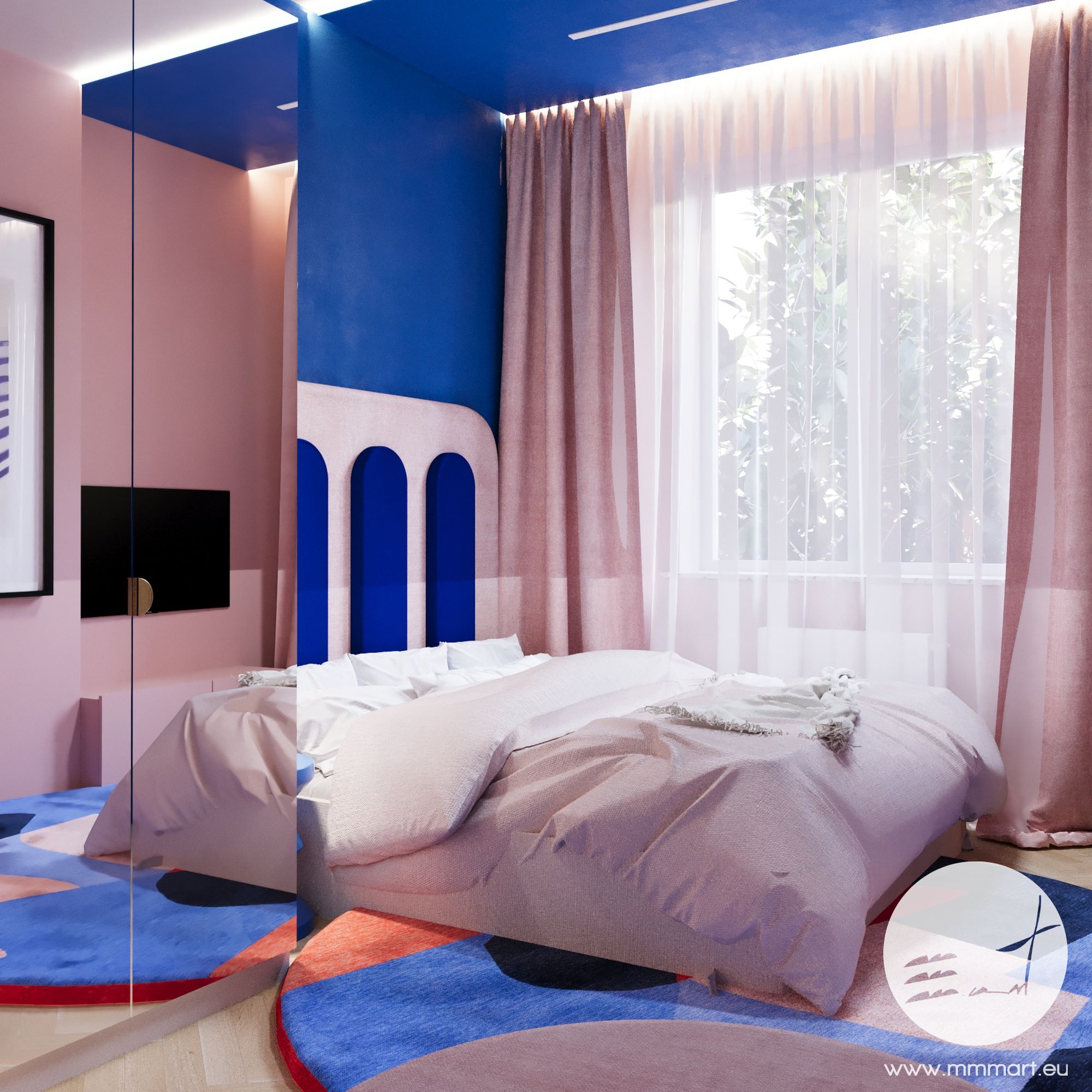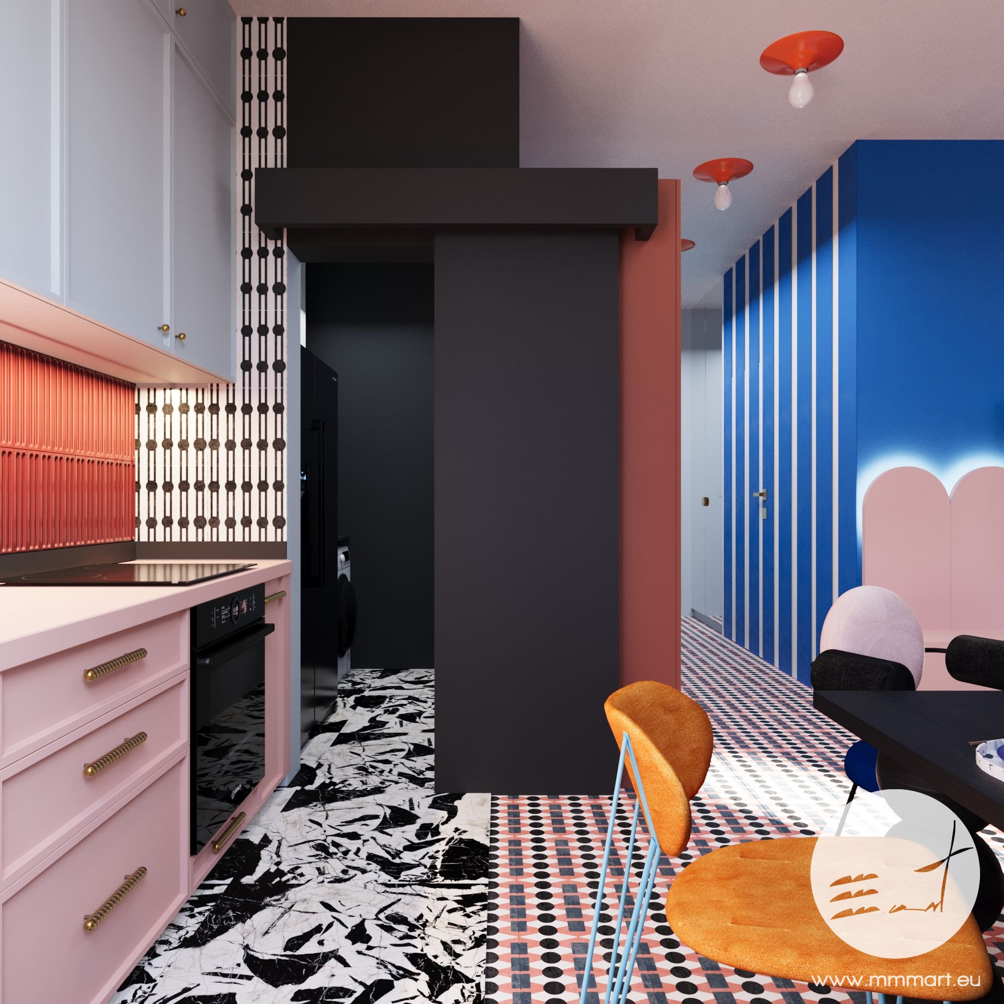 Projekt wnętrz mieszkania w mocnych kolorach,