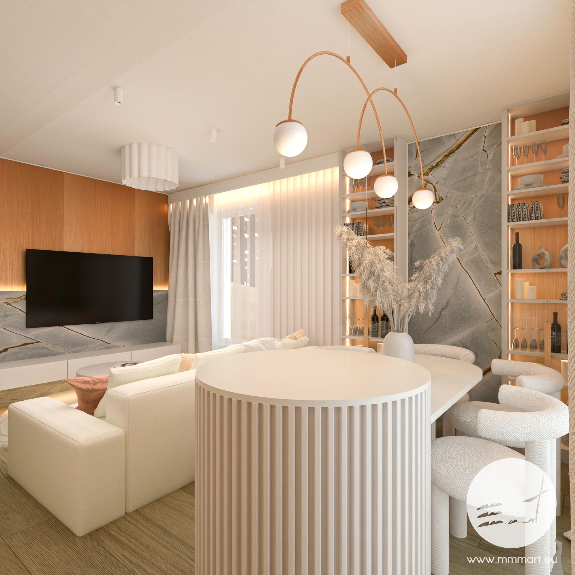 Projekt wnętrz w klasycznej, nowoczesnej elegancji, Mieszkanie 59 m2, Warszawa, Wola