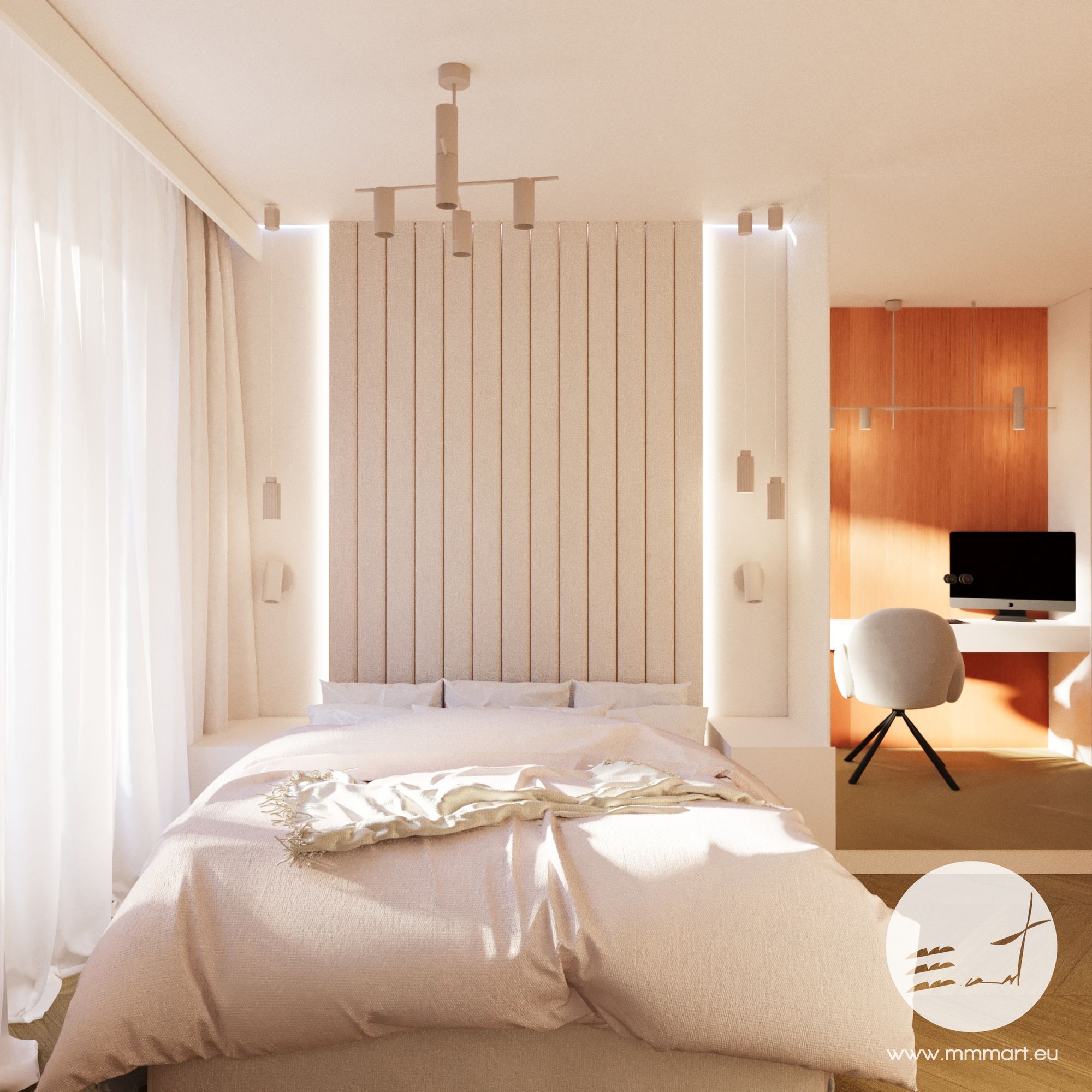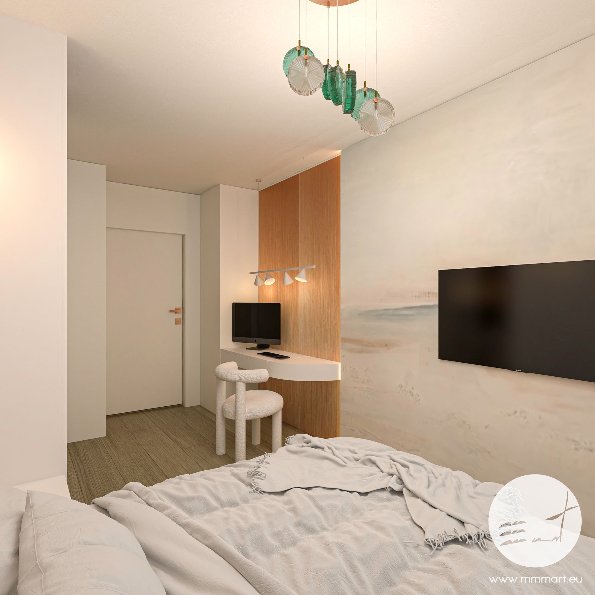 Aranżacja wnętrz mieszkania w stylu nowoczesnej, klasycznej elegancji. Przytulne wnętrza w beżowej, kojącej tonacji połączeniu z ciepłą oliwkową zielenią.